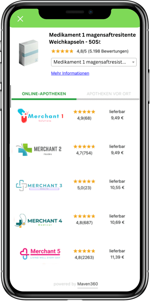 Unsere Omnichannel-Lösung verbindet deine Markenseiten und digitalen Kampagnen dynamisch mit über 60 (Versand-)Apotheken und verwandelt so jeden Kontaktpunkt in eine potenzielle Kaufgelegenheit.
